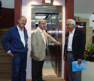 Se realizó la presentación del ascensor de la sede. Allí estuvieron, entre otros, el presidente Nicolás Russo, Néstor Díaz Pérez y Gerardo Venutolo, el representante de Ascensores Sur.